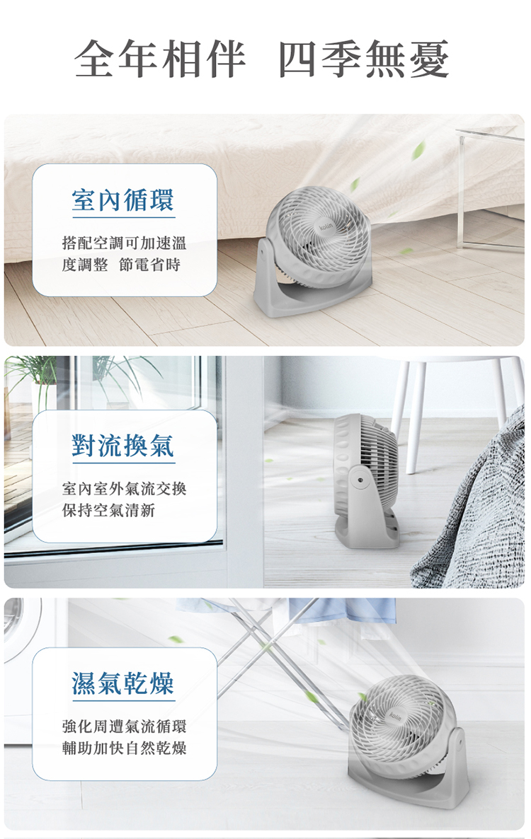 • 搭配冷暖氣使用,加強對流