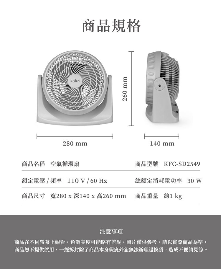 【歌林】9吋空氣循環扇KFC-SD2549