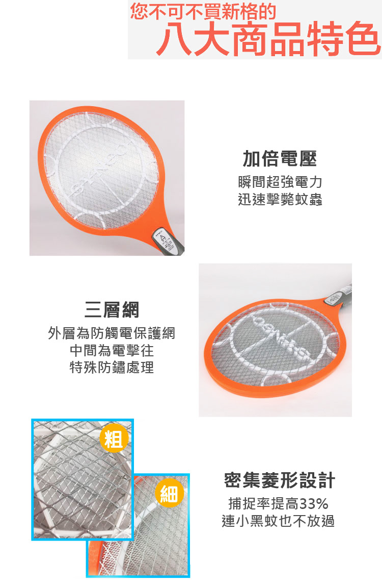 • 瞬間超強電力,迅速擊斃蚊蟲