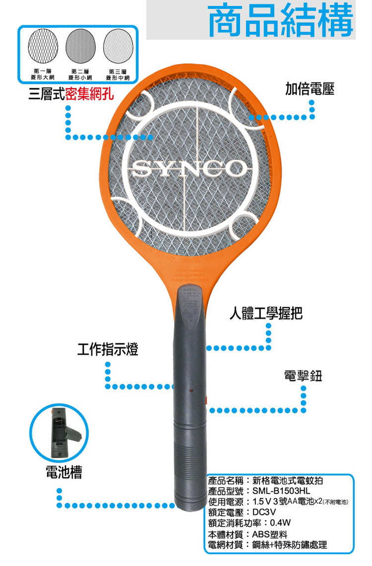 【新格】電池式小黑蚊電蚊拍SML-B1503HL