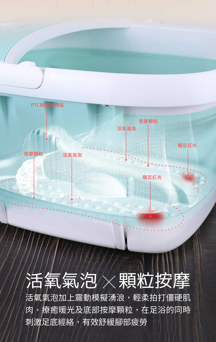 • 氣泡SPA震動&紅光暖足