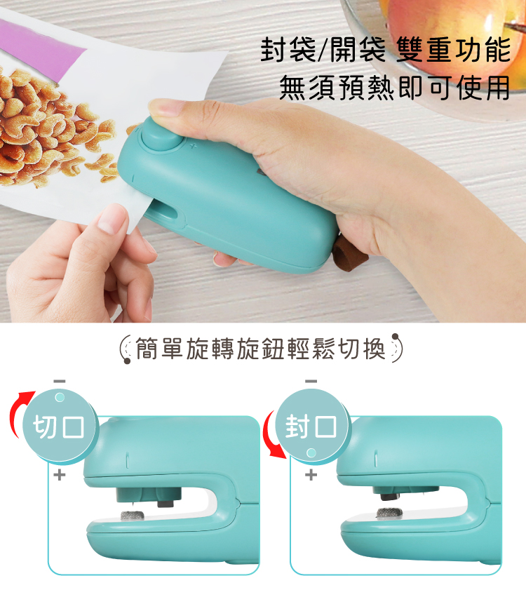 • 開袋/封袋 雙重功能