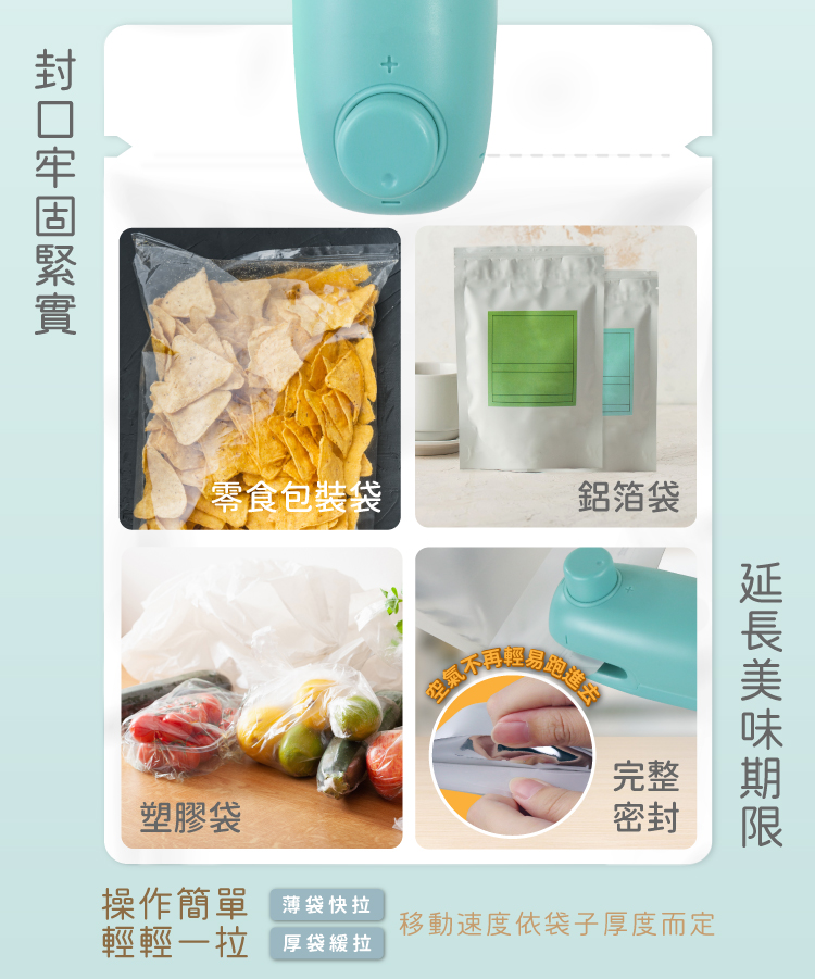 • 隨開即用,快速封袋