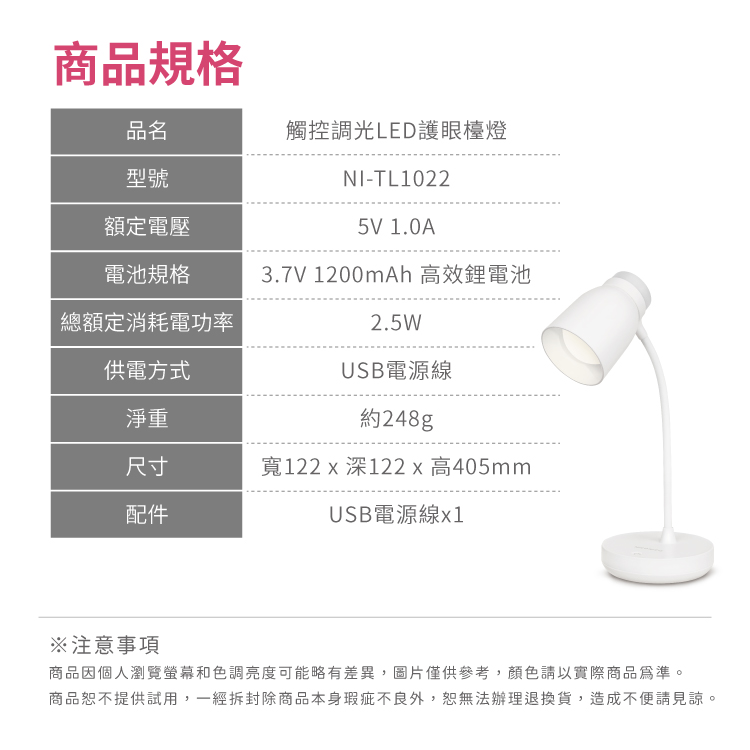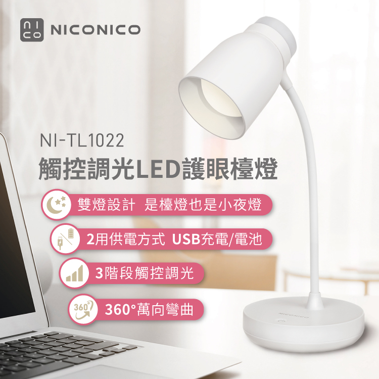 【NICONICO】觸控調光LED護眼檯燈NI-TL1022