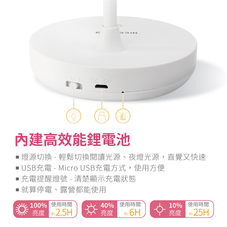 • 內置高效鋰電池,停電也都能使用