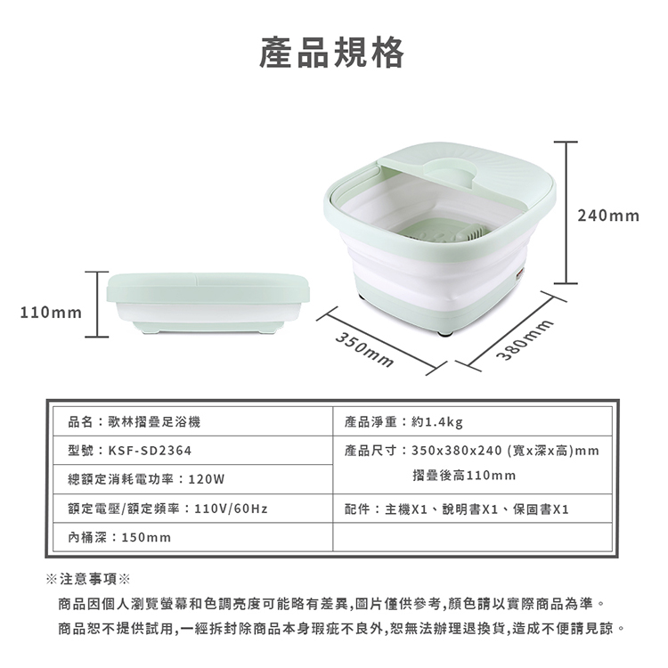 【歌林】摺疊式恆溫SPA足浴機KSF-SD2364