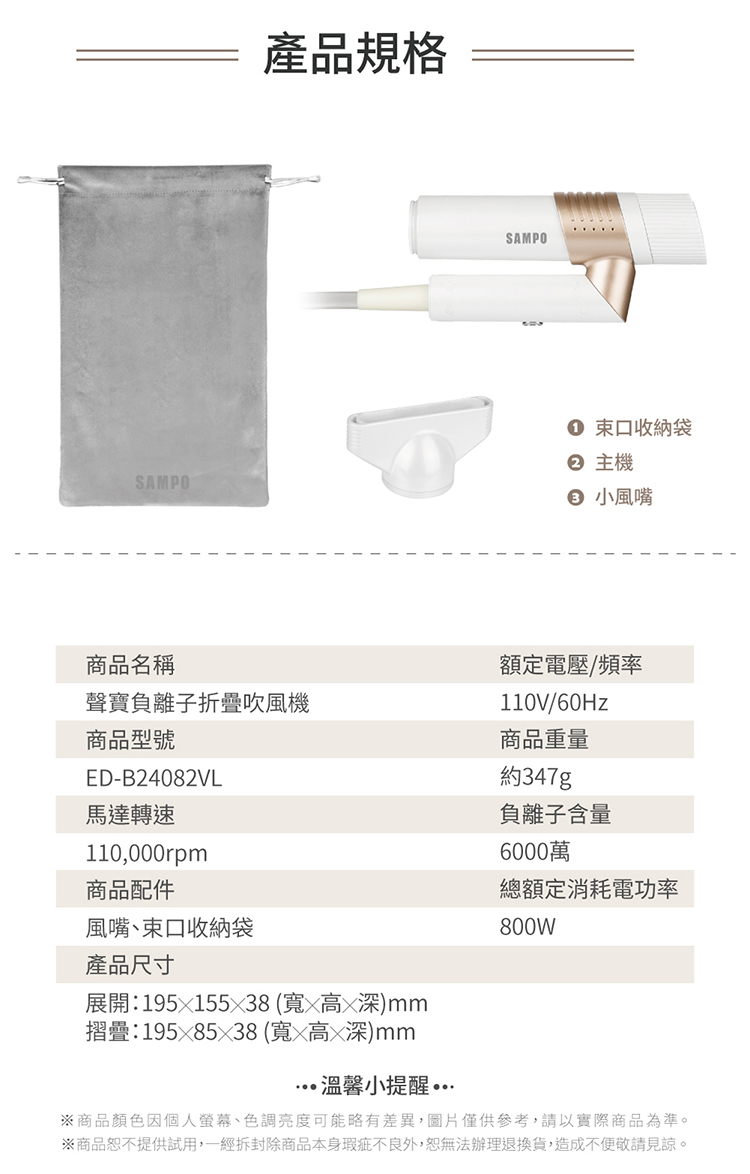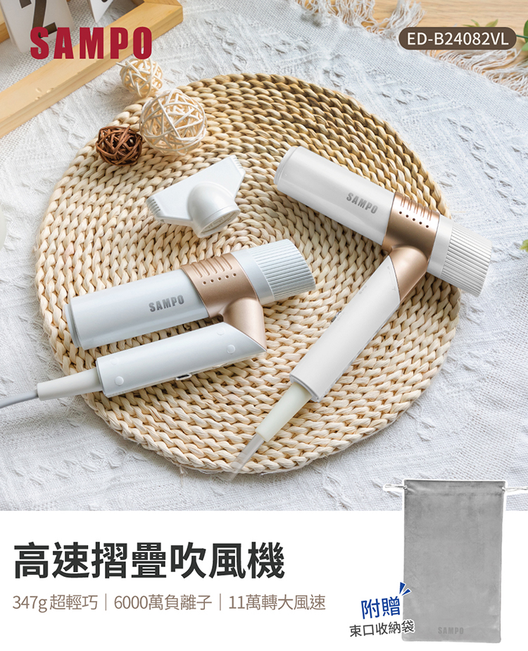 【聲寶】摺疊高速負離子吹風機ED-B24082VL