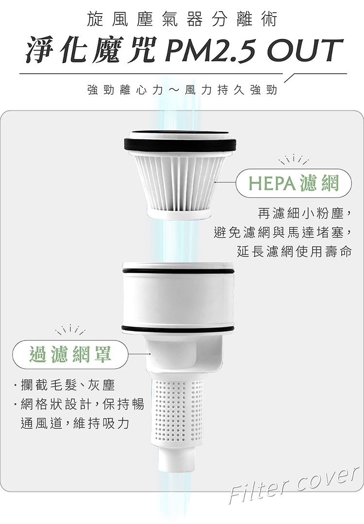 • 多重過濾系統,髒污層層分離