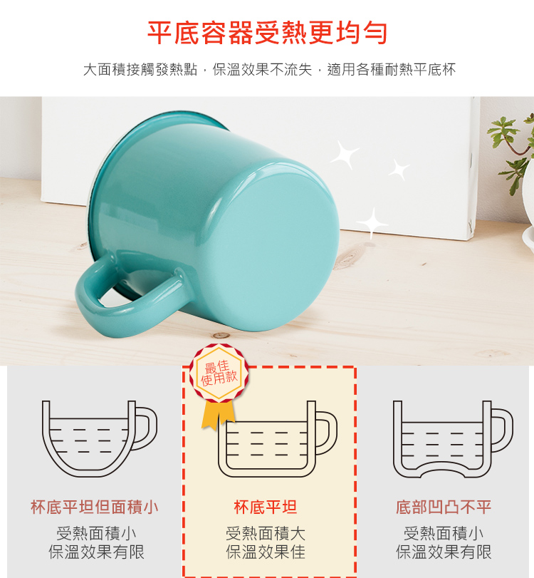 • 適用各種耐熱平底杯:陶瓷、玻璃、金屬材質