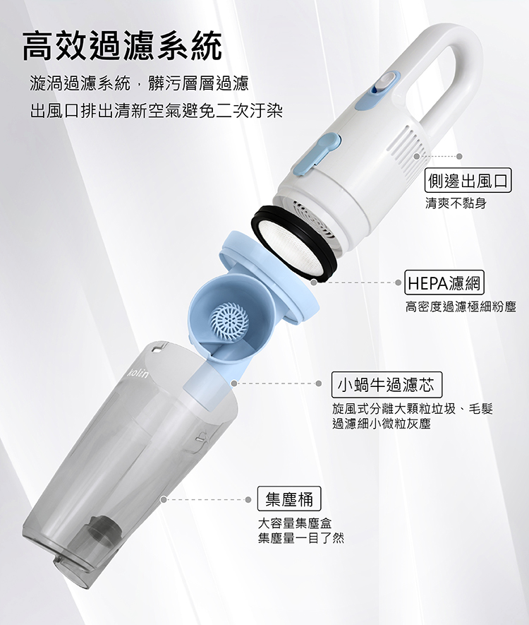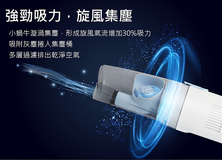 • 強勁吸力,旋風式吸塵