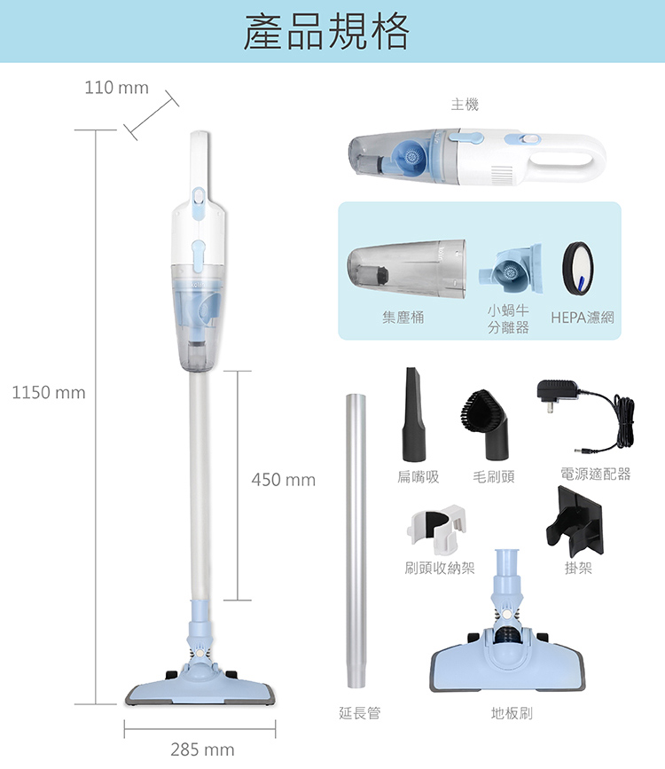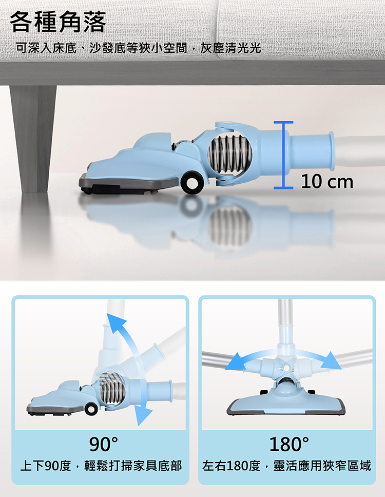 • 直立/手持兩用,金屬延長管,延伸清潔範圍