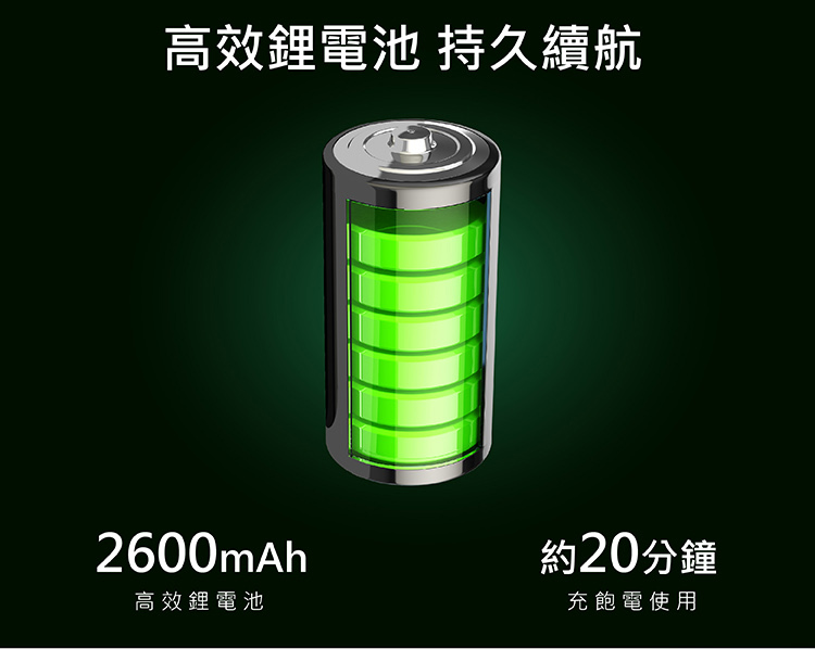 • 高效鋰電池,持久續行