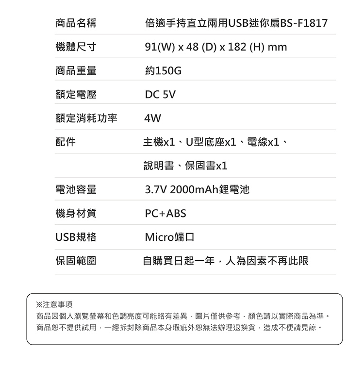 【BASS】手持直立兩用USB迷你扇BS-F1817