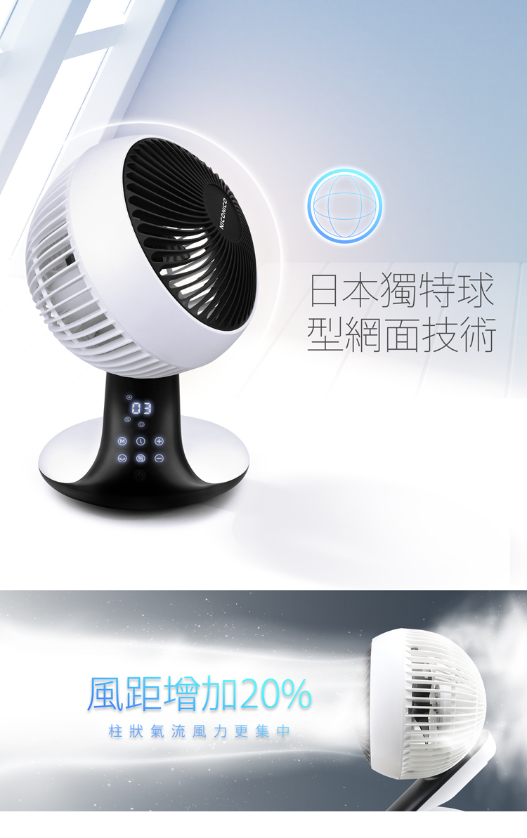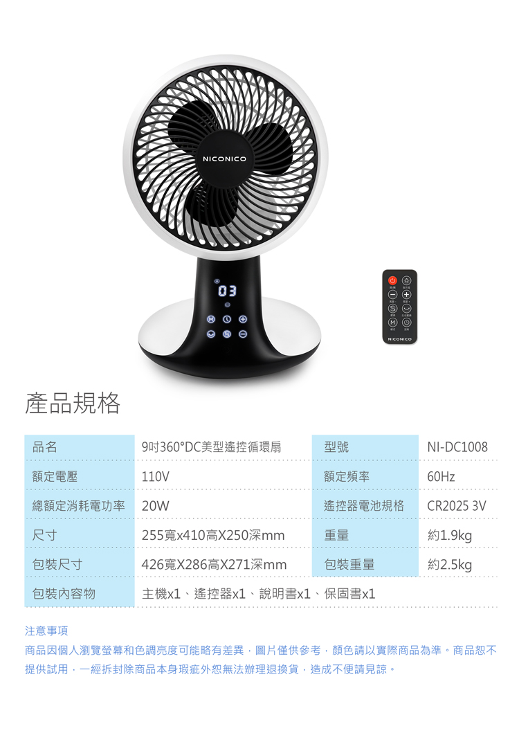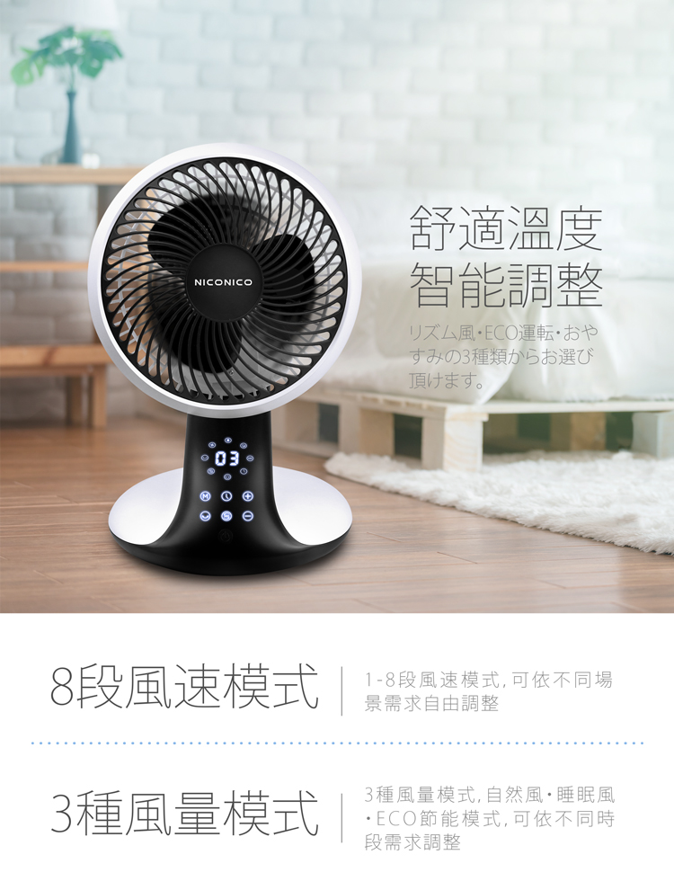 【NICONICO】9吋360°DC美型遙控循環扇NI-DC1008