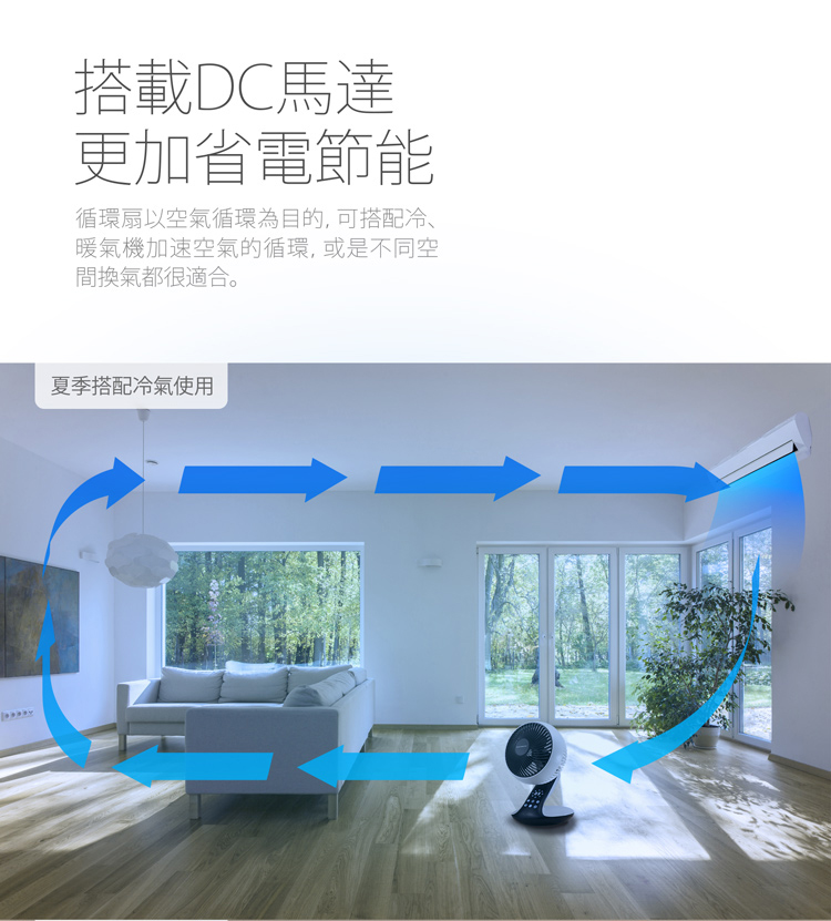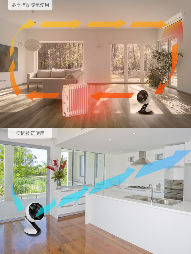 - 搭配冷暖氣使用,加強循環對流