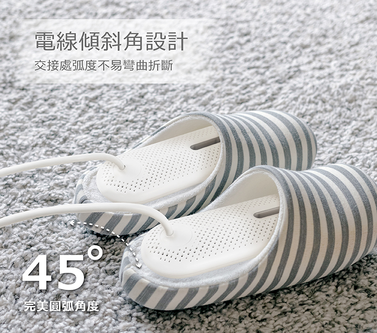 - 45度斜角設計,電源線不易彎折