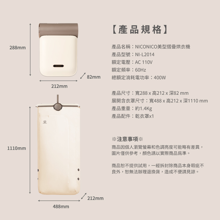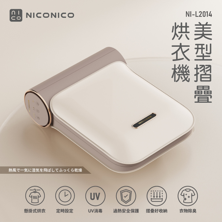 【NICONICO】美型摺疊烘衣機NI-L2014 (乳酪色)