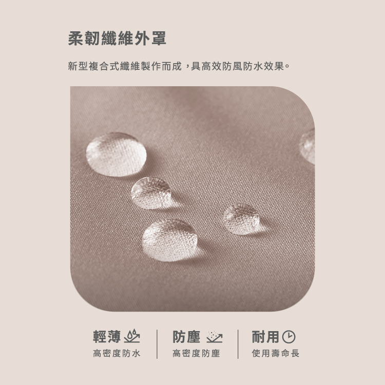 • 外罩纖維柔韌,高效防風防水