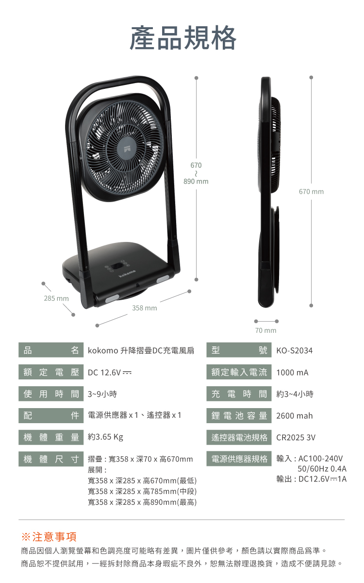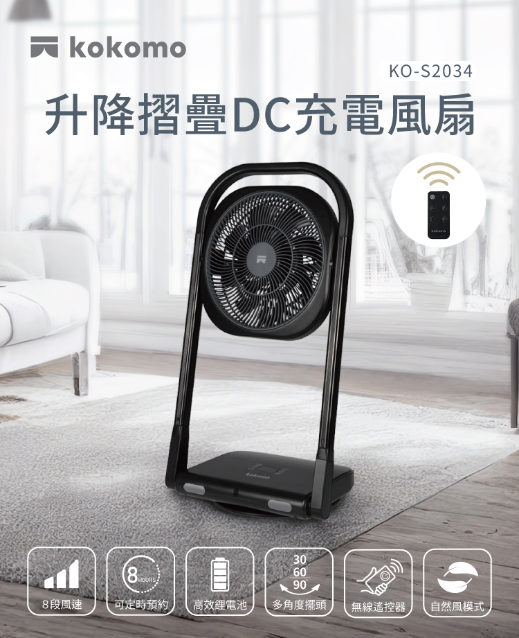 【kokomo】升降摺疊DC充電風扇KO-S2034