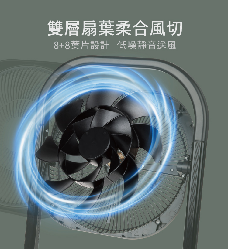 • 8+8雙層扇葉,自然柔風更舒適