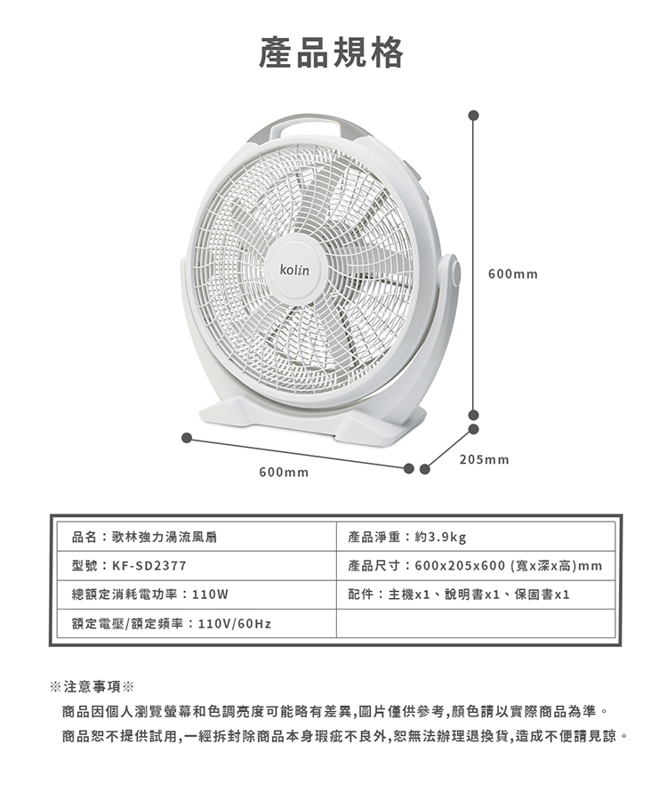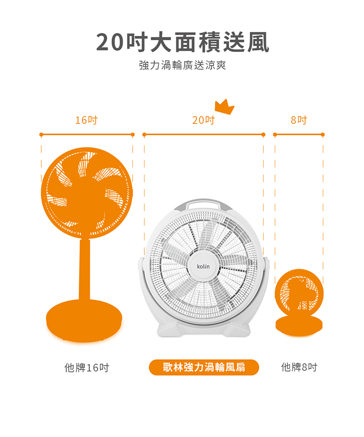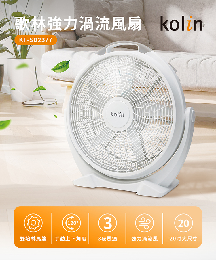 【歌林】20吋強力渦流空氣循環扇KF-SD2377