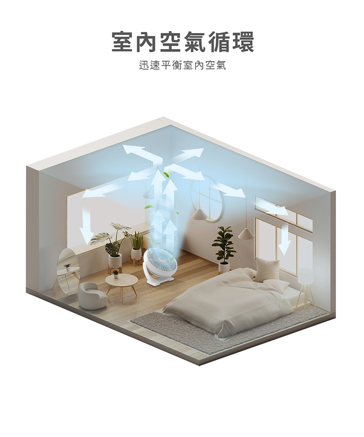 • 渦輪強力氣流,促進空氣循環