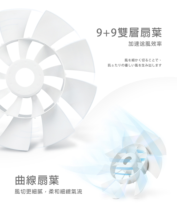 • 9+9雙層扇葉,自然柔風更舒適
