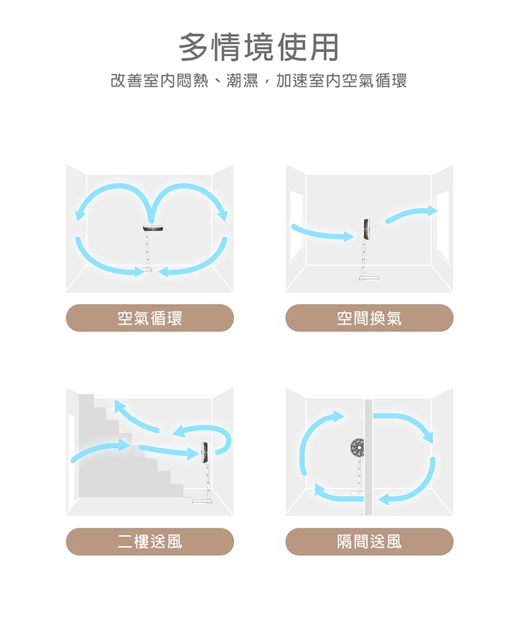 • 搭配冷暖氣使用,加強循環對流