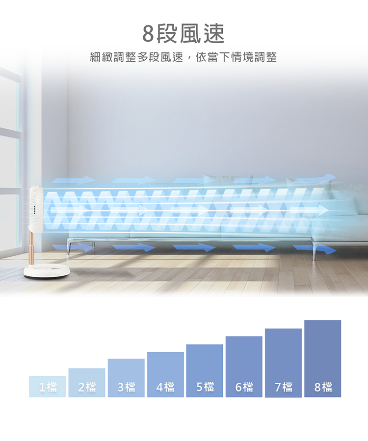• 八段風速調整,可無線遙控