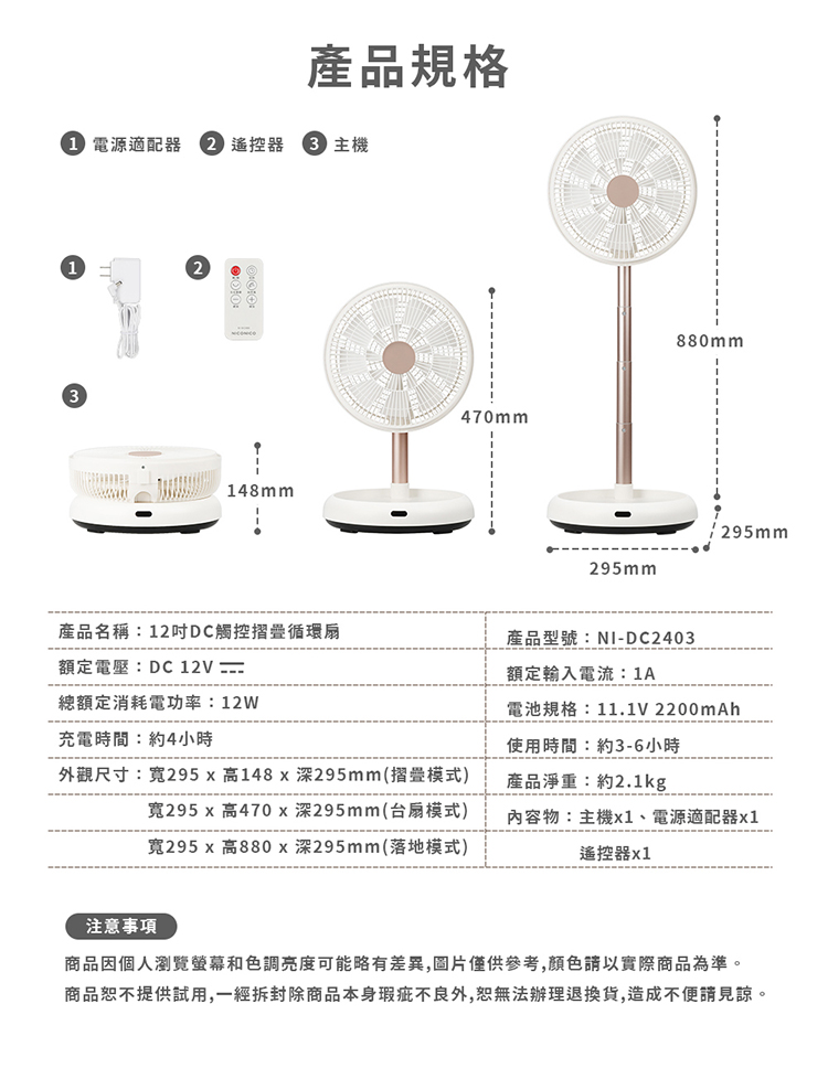 【NICONICO】 12吋DC觸控摺疊循環扇NI-DC2403