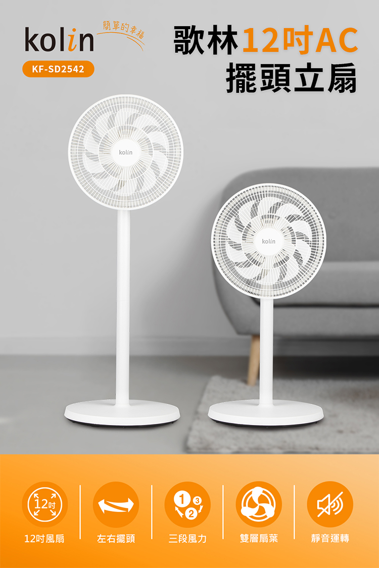 【歌林】12吋擺頭循環立扇KF-SD2542