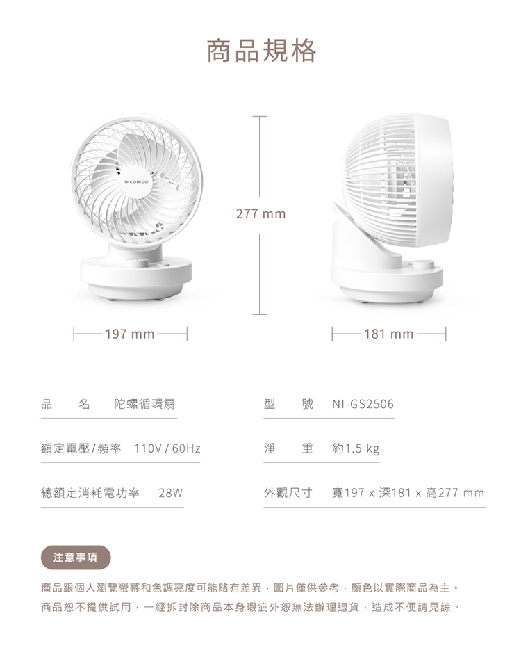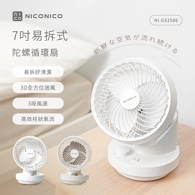 【NICONICO】易拆式陀螺循環扇NI-GS2506