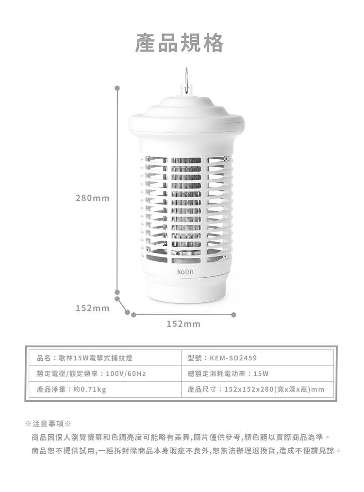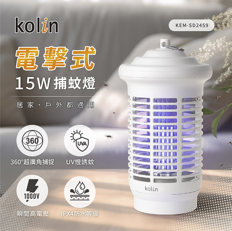 【歌林】15W防水電擊式捕蚊燈KEM-SD2459