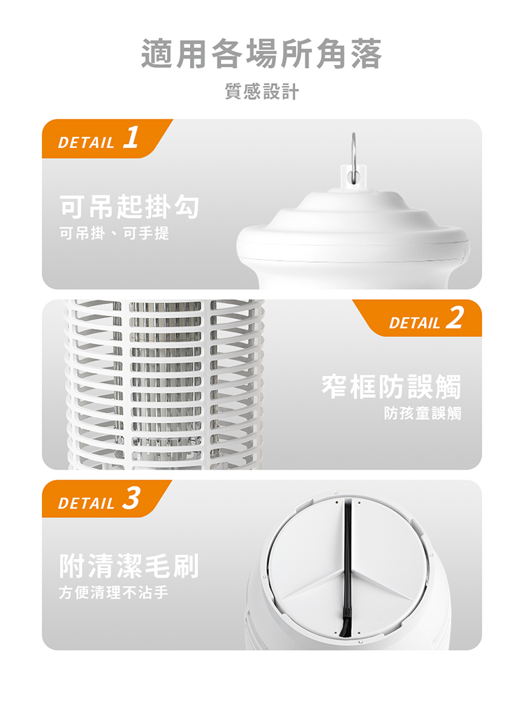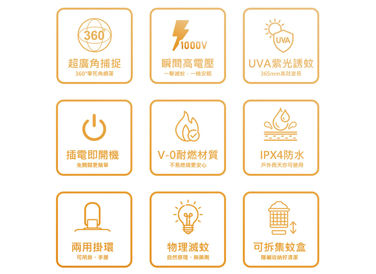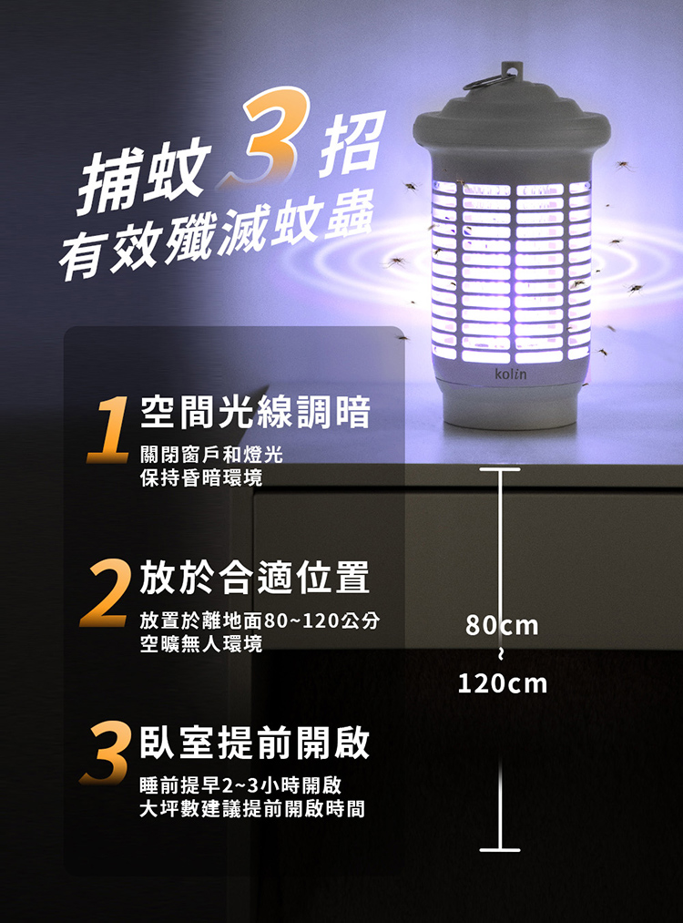 • 360度廣角大範圍誘蚊,捕殺效率高