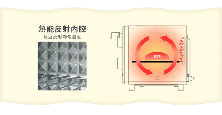 • 菱格狀背板多角度反射,烘烤溫度更均勻