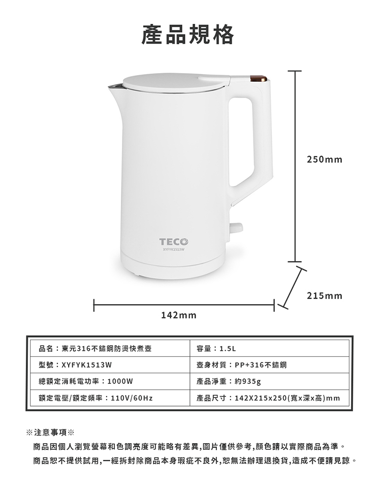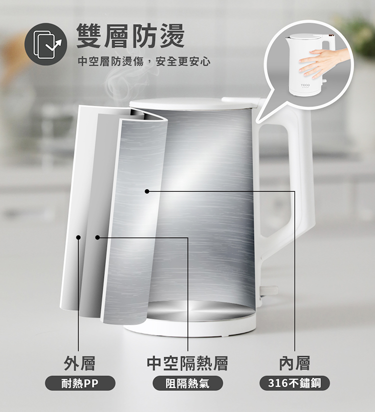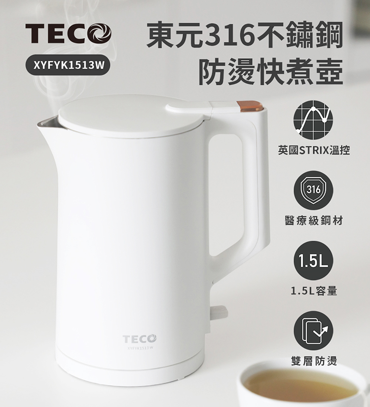 【東元】316不鏽鋼雙層防燙快煮壺XYFYK1513W